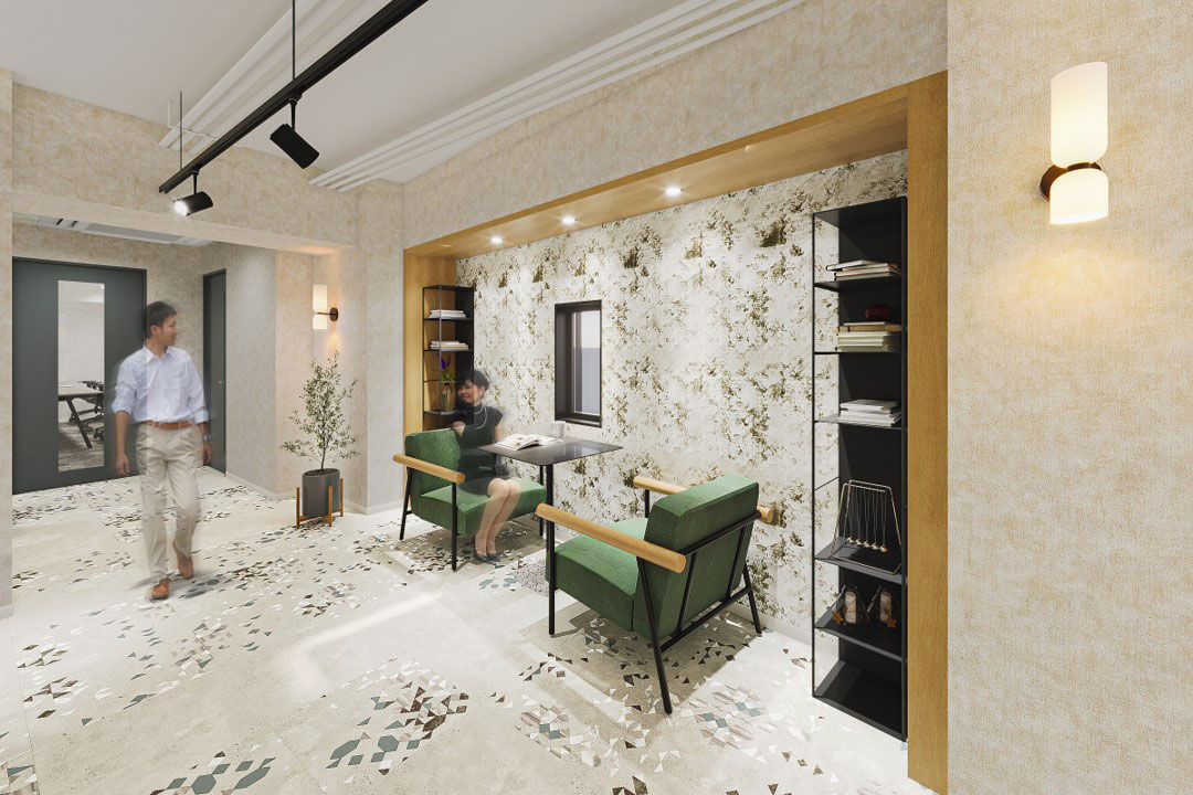 ホテルのような受付とゆったり会議室のある内装付きオフィス